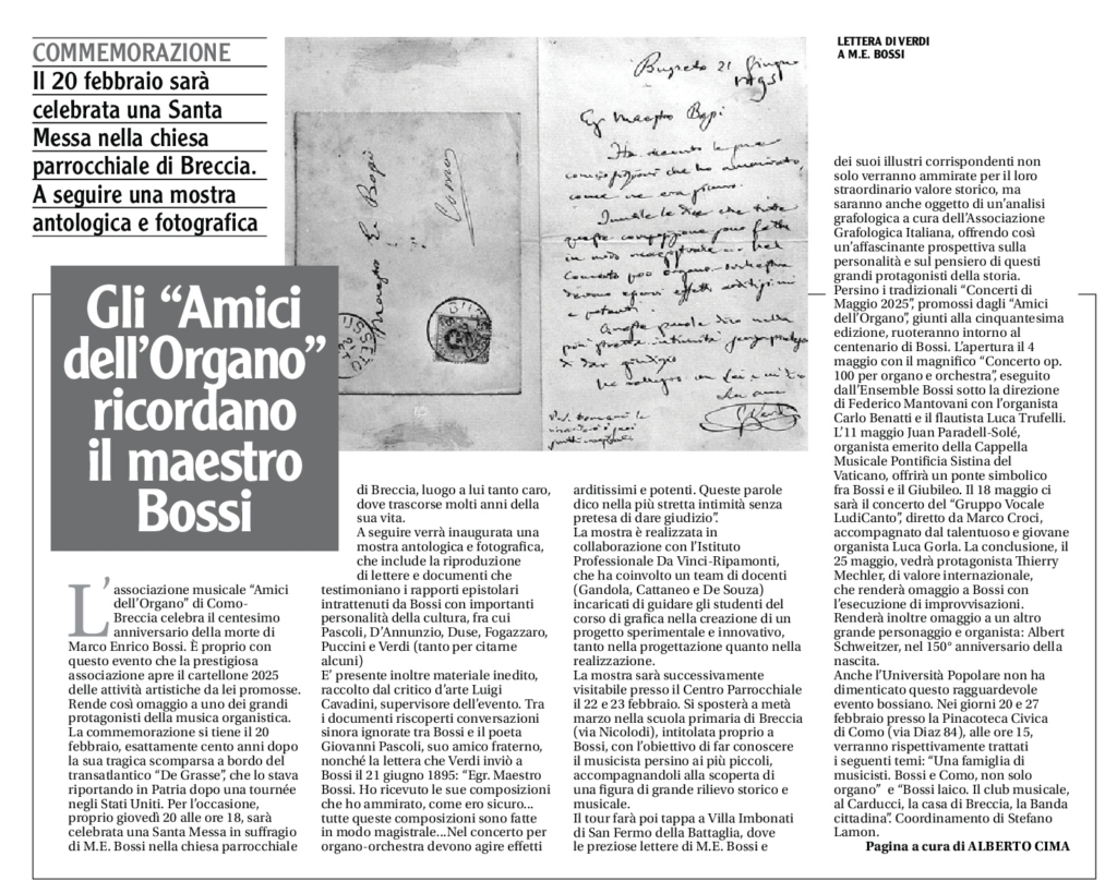 Prima che il doppio annuario celebrativo di 50 anni di musica, arte e fede dell’organo a canne di Breccia trovi posto accanto alle non poche pubblicazioni edite negli anni dall’associazione Amici dell’Organo di Breccia, non ci si può non soffermare sul corposo elenco di tre centinaia di eventi musicali promossi in questo mezzo secolo con passione, entusiasmo, dedizione, grande cura e pari cuore dal gruppo di amici raccolti attorno a uno strumento e una chiesa di un piccolo quartiere alle porte di Como con in testa, da sempre, Daniele Grisoni. La lunga chiacchierata con il presidente degli Amici dell’Organo, che ci accoglie nel proprio studio fra una consolle a due tastiere e lo scrittoio originale che fu di Marco Enrico Bossi è l’occasione per raccogliere la testimonianza dello spirito che, dalla fine degli anni Sessanta, in un angolino di mondo già scelto come “buen retiro” da Marco Enrico Bossi cui veniva donato un nuovo grande organo a canne che avrebbe generato mezzo secolo di arte e cuore.