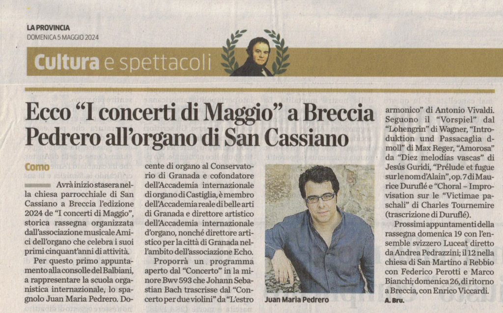 Sembrava il mese più adatto per coinvolgere le persone: non ancora estate, l’autunno occupato dal festival internazionale omonimo. Direi che ha funzionato… L’anno 51 dell’organo di Breccia ospiterà un poker di iniziative nel solco di quella che è ormai la logica di questi ultimi anni: un interprete di rilievo di scuola italiana, un rappresentante di scuola estera, un appuntamento di organo e altri strumenti e una serata di coinvolgimento dei giovani.